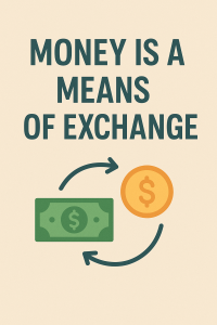 You produce a piece of furniture, I produce some clothes… We exchange value for value. But sometimes I don’t want what you produced, so I need something to hold the value to exchange for something else. That’s where money comes in. It becomes a placeholder for value. This value can then be used to purchase any other stuff.
